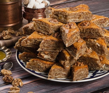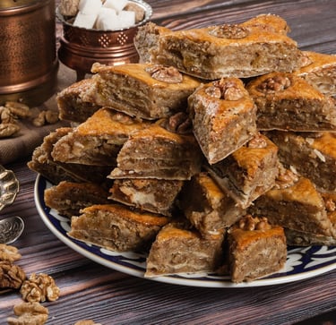 It's Azerbaijan's most famous dessert, known for its extreme sweetness and unique texture, composed of layers of wheat or rice dough mixed with honey and walnuts. This delicious dessert is often served during holidays and special celebrations. Baklava has many regional variations, each with its own recipe and secret ingredients. The classic is with a walnut on each piece, but there are versions that include pistachios, almonds, and even spices like cinnamon for an extra touch of flavor. There's nothing better than a piece of baklava accompanied by a good Turkish tea or aromatic coffee to fully appreciate its richness and history. This dessert is more than just a delicacy; it's a symbol of hospitality and culinary tradition in Azerbaijani culture, beloved by all who taste it.