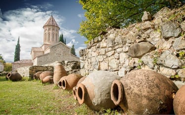 Recent archaeological discoveries have uncovered traces of winemaking dating back more than 8,000 years. The typical Georgian technique of storing and maturing wine in qvevri vessels is evidence that the ancient inhabitants of Georgia were the first to understand the potential of preserving grape juice underground. Today, Georgian wine is increasingly appreciated globally, with nearly 100 million bottles exported to over 50 countries annually. Georgia boasts more than 500 grape varieties, most of them indigenous, from which the Georgian winemaking tradition produces excellent wines such as Saperavi, Mtsvane, Chinuri, Rkatsiteli, Aleksandrouli, and Tsolikauri. Wine is produced in all regions of Georgia, but the most famous is undoubtedly the Kakheti region, a destination for Georgia's main wine and food tours.