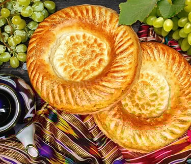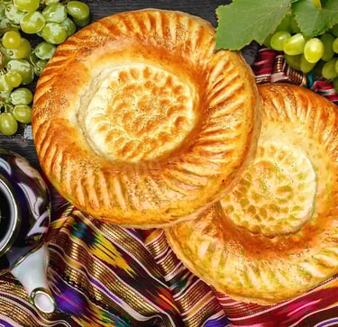 A typical Uzbek flatbread used as bread. There are several dozen types of naan flatbread, including "patyr," "katlama," and a special Samarkand flatbread. The versatility of naan is astonishing, as it can be served with a variety of dishes, from spicy curries to fresh salads. Furthermore, its soft texture and unique flavor make naan an ideal accompaniment to any meal, quickly becoming a favorite among families and restaurants. Making naan requires attention and skill, but the end result is always an extraordinary and unforgettable taste experience. In many regions of Uzbekistan, the tradition of baking naan in wood-fired ovens is still very much alive, and each family has its own secret recipes and methods, passed down from generation to generation.