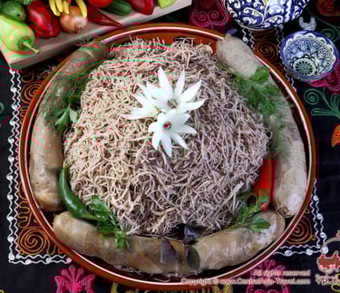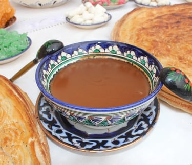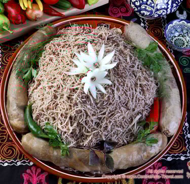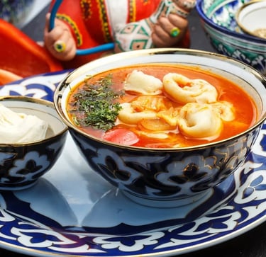 A typical Uzbek dish, incredibly flavorful and popular, these small, thin-crust meat dumplings are cooked in a broth rich in aromatic spices. These dumplings are prepared with great care and attention, enclosing a succulent filling that can vary depending on regional culinary traditions. Many chefs also add fresh herbs to further enhance the flavor, making each dish a unique culinary experience. Typically served with a spicy sauce or yogurt, Chuchvara are a true icon of Uzbek cuisine, beloved by all and often prepared for special occasions and local celebrations, where conviviality is paramount.