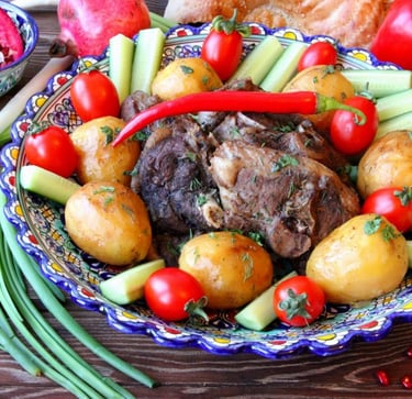 A classic dish cooked in a cauldron. The lamb is fried in oil, then potatoes are added and the whole thing is simmered together. This traditional dish is one of the most beloved specialties of the local cuisine, with a rich combination of flavors and aromas that make it unique. The finished dish is served with fresh onions and perhaps a side of aromatic herbs, which add a touch of freshness and color. It is often enjoyed during holidays and special occasions, bringing with it stories of conviviality and tradition.