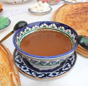A festive dish prepared for Navruz, the spring festival. This traditional dish is prepared with care and dedication, symbolizing prosperity and abundance. Preparing sumalak requires a laborious process: it uses germinated wheat grains, which are boiled and mixed with flour, creating a thick, rich paste. The finished sumalak is served cold, often accompanied by traditional sweets and dried fruit, making the celebrations even more delicious and memorable. It is customary for families to gather together to prepare it, creating emotional bonds and celebrating the beauty of tradition. This dish is much more than just food; it is a symbol of cultural unity, passed down from generation to generation.