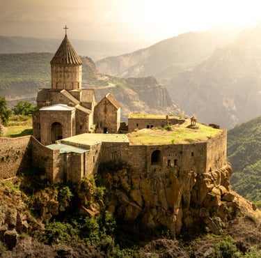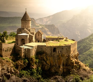 L'Armenia è una piccola nazione del Caucaso situata al crocevia di Asia ed Europa. Il turismo di massa non ha ancora raggiunto queste terre in cui meraviglie naturali dei suoi paesaggi si intrecciano a splendide architetture medievali. Vanta una storia affascinante che risale a millenni fa e una cultura che ha affascinato viaggiatori da tutto il mondo. Il patrimonio architettonico armeno è legato alla cristianità: l'Armenia è infatti una delle più antiche nazioni cristiane al mondo. La chiesa armena risale infatti al 301 D.C. e ha lasciato una ricca eredità all'odierno patrimonio artistico e architettonico armeno, che include antiche chiese, monasteri e fortificazioni che raccontano storie di fede e resistenza. Inoltre, il paesaggio è spettacolare, con le montagne che si ergono maestose e i laghi cristallini che riflettono la bellezza della natura . Un viaggio in Armenia è tutto questo: fede, scoperta, storia, paesaggi, architettura, buona cucina e un popolo ospitale che non farà mai mancare il suo sorriso al visitatore. Le tradizioni culinarie sono un elemento fondamentale della cultura armena, con piatti deliziosi come il khorovats (barbecue), dolci come il gatas e l'inconfondibile brandy armeno, famoso in tutto il mondo. Ogni angolo di questo paese vi racconta una parte della sua storia e ogni visione lascia un'impronta nel cuore. Scoprire l'Armenia è un invito a unirsi a un cammino ricco di esperienze uniche e autentiche.