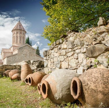 Dopo la colazione e il check-out in hotel, visita il colorato Sheki Bazaar. Qui puoi trovare praticamente tutto ciò che potresti desiderare di mangiare: frutta e bacche locali, spezie, pane appena sfornato, miele, formaggi e dolci Sheki. Proseguimento fino al Palazzo Sheki Khan, circondato dalle mura della fortezza medievale. Visita alle botteghe artigiane e al famoso caravanserraglio. Partenza da Sheki verso il confine con la Georgia (115 km, ~2 ore). Attraversamento del confine e visita alla parte orientale della Georgia, famosa per le sue tradizioni di viticoltura e vinificazione. La prima tappa sarà la cantina Khareba, vicino alla città di Kvareli. L'esclusiva cantina di Khareba si trova in un tunnel scavato nella roccia. Originariamente costruito per scopi militari, oggi il tunnel è utilizzato per conservare i migliori vini di Kakheti. Visita alla cantina con degustazione. Trasferimento all'Akhasheni Wine Resort per la notte. Questo resort è circondato da splendidi vigneti e offre una vista mozzafiato sulle montagne del Caucaso: il luogo perfetto per fare una pausa prima di continuare il nostro viaggio in Georgia.
